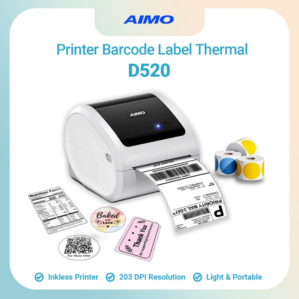 AIMO D520 PRINTER BARCODE THERMAL LABEL RESI 110MM A6 KONEKSI USB / BLUETOOTH
