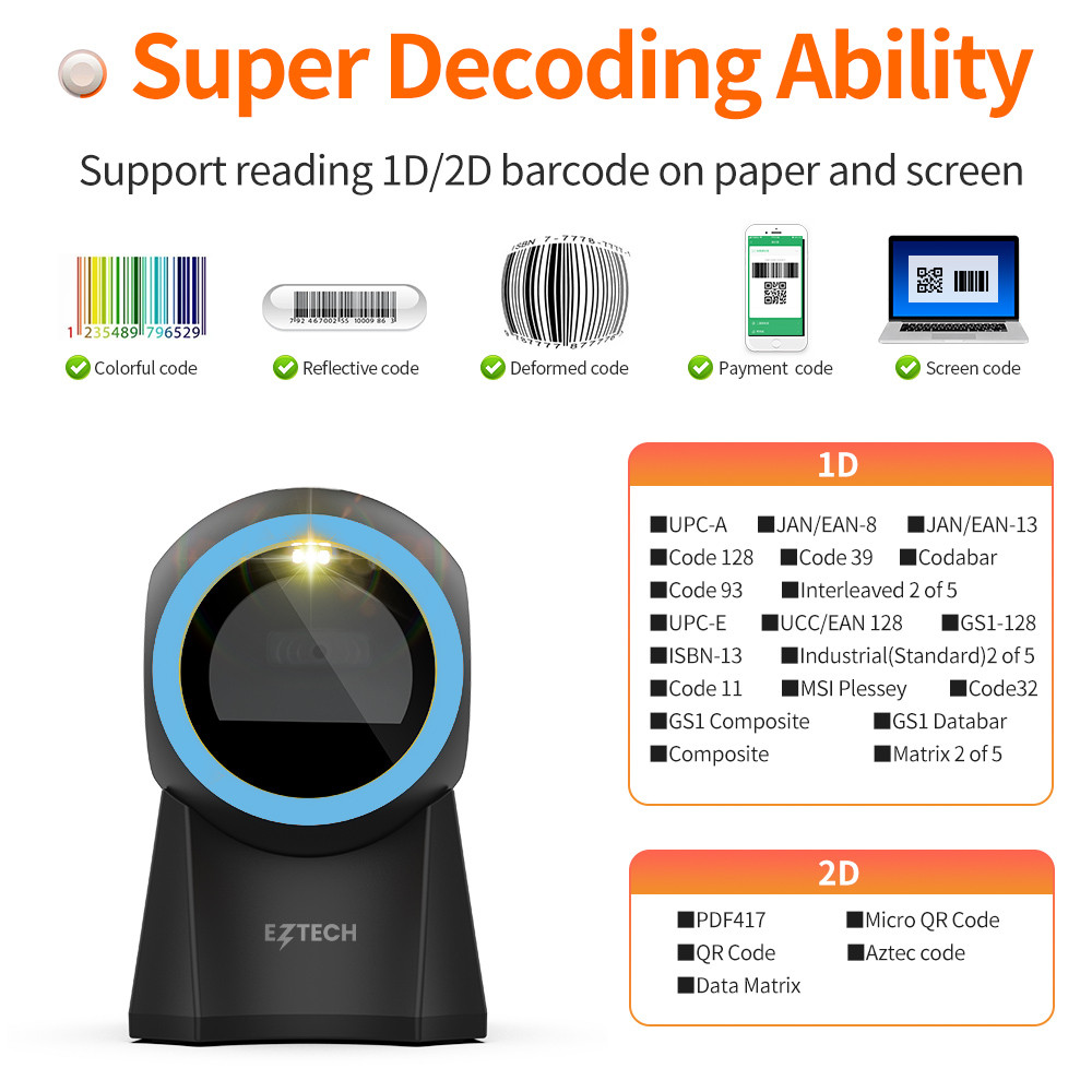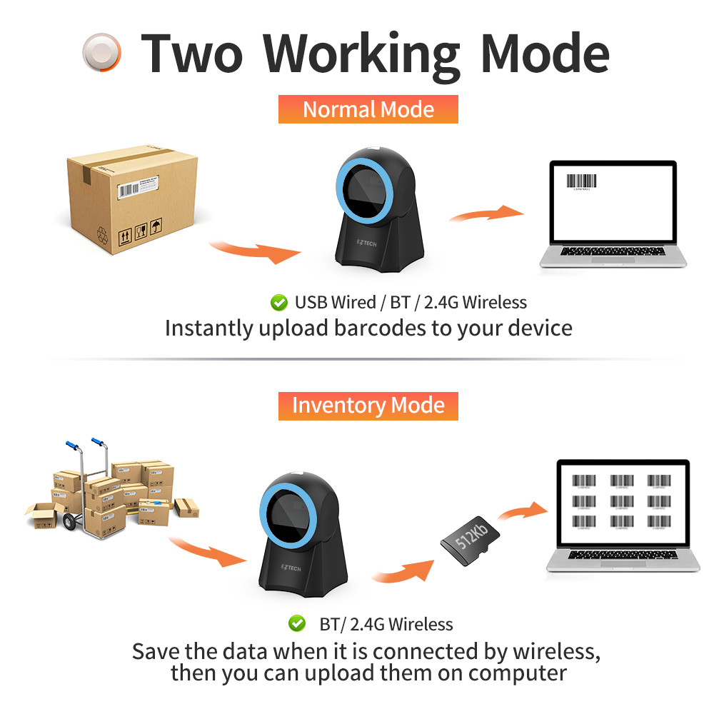 GT-9600DB Wireless Bluetooth Barcode Desktop Omni Scanner 1D+2D Auto Scan QR Code & Barcode Scan CMOS Sensor Akurasi Tinggi