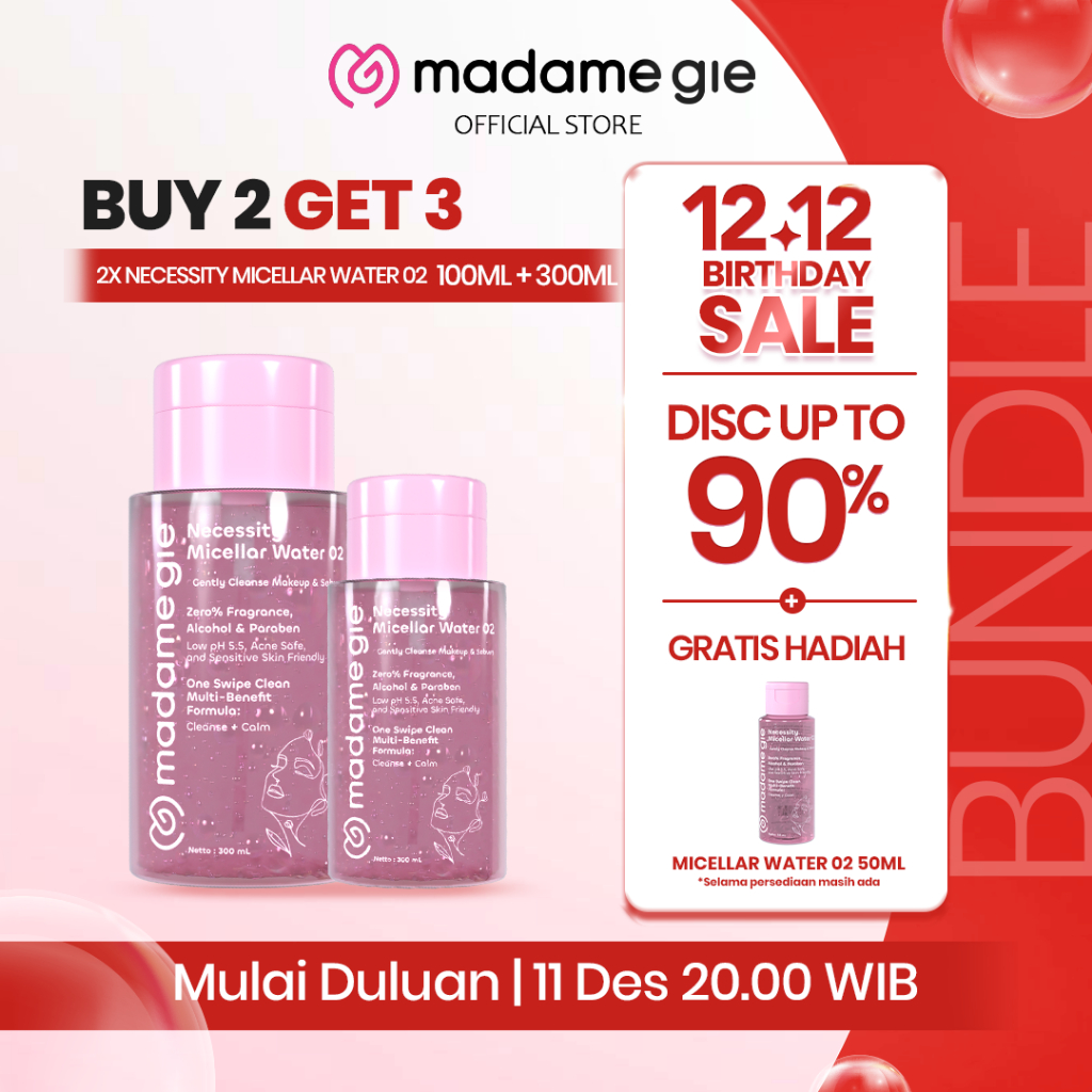 [GRATIS MICELLAR WATER] 2X Madame Gie Necessity Micellar Water 02 100ml & 300ml - Makeup Remover Cleanse & Calm |