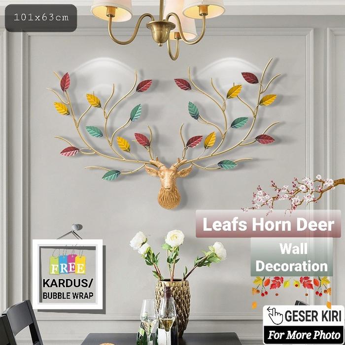 Hiasan Dinding Kepala Rusa Tanduk Daun Home Wall Decor Deer Leafs Horn