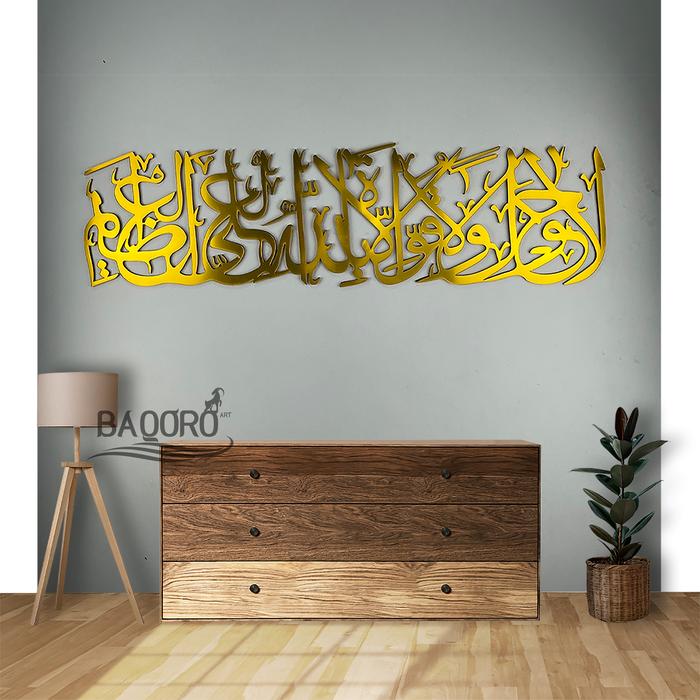 Hiasan Kaligrafi Lahaula Walaquwwata Ilabillah Ukuran Besar Akrilik Gold Silver Hitam Mirror Untuk