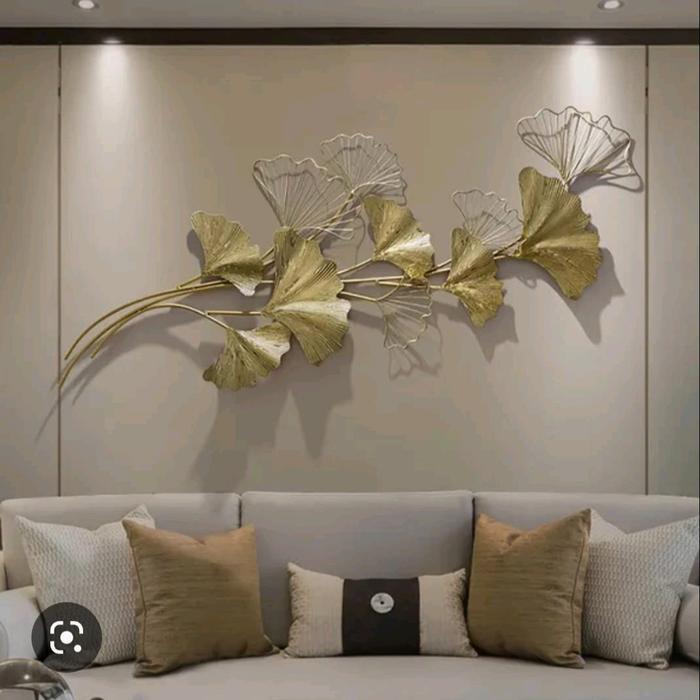 Hiasan Dinding Modern Tanpa Bingkai Ukuran 55cm x 110cm Warna Gold Metalic - Besi