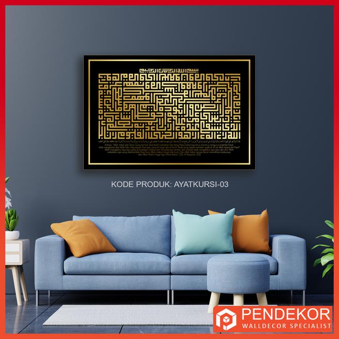 Hiasan Dinding Kaligrafi Ayat Kursi Kufi Ukuran 40x60cm