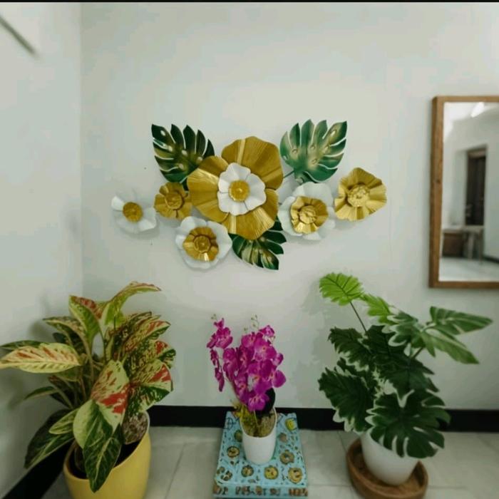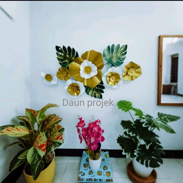 Hiasan Dinding Terlaris Type (B14) Daun Projeck Motip Mewah Bahan Besi - Ukuran L100cm x T50cm