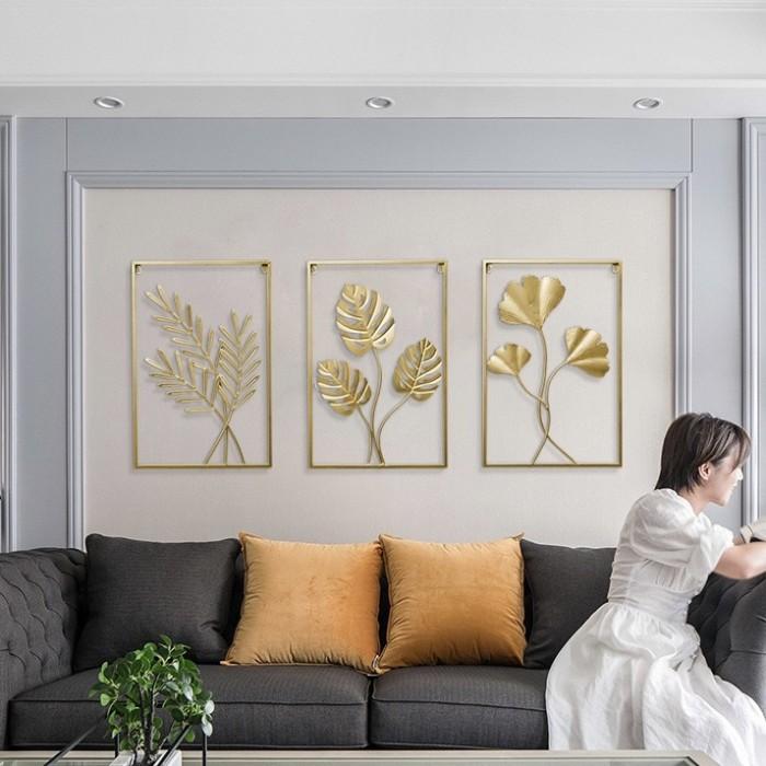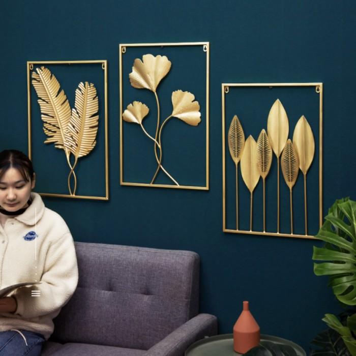 Pajangan Dinding Wall Decoration Besi Warna Gold Hiasan Daun 40x60cm Hoomey