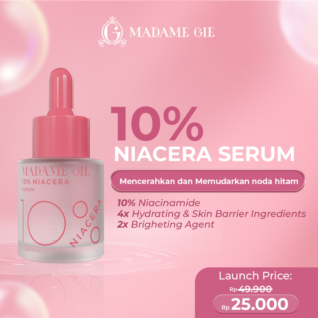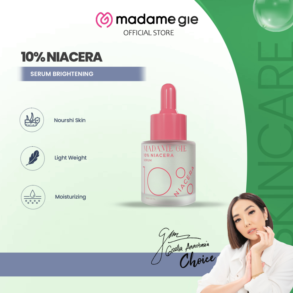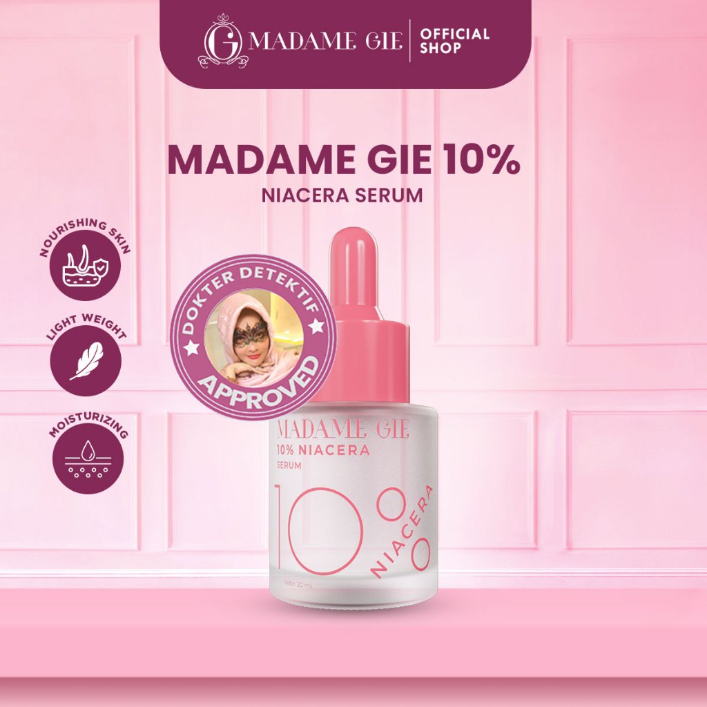 Madame Gie 10% Niacera Serum 20ml - Skincare Serum 2X Brightening Agent & 4X Hydrating dengan 10% Niacinamide