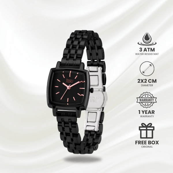 Jam Tangan Wanita Anti Air Murah Terbaru Model Korea Anti Air Kasual Segi Steel Hitam Bergaransi 1 Tahun Jisu Watch