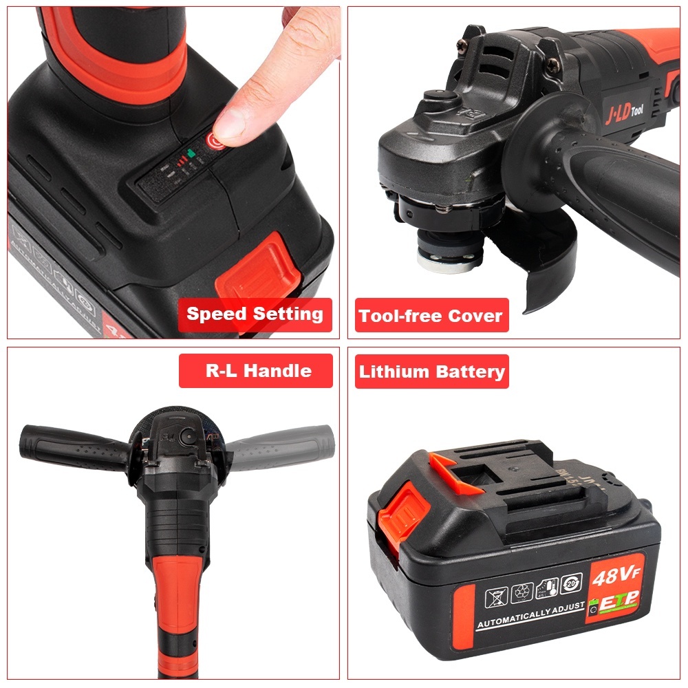 JLD 88VF Gerinda Baterai Brushless 4Inch M10 Cordless Angle Grinder Mesin Gerinda Baterai Tangan Mesin Potong2Baterai Ko