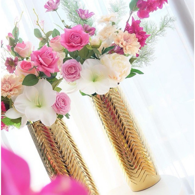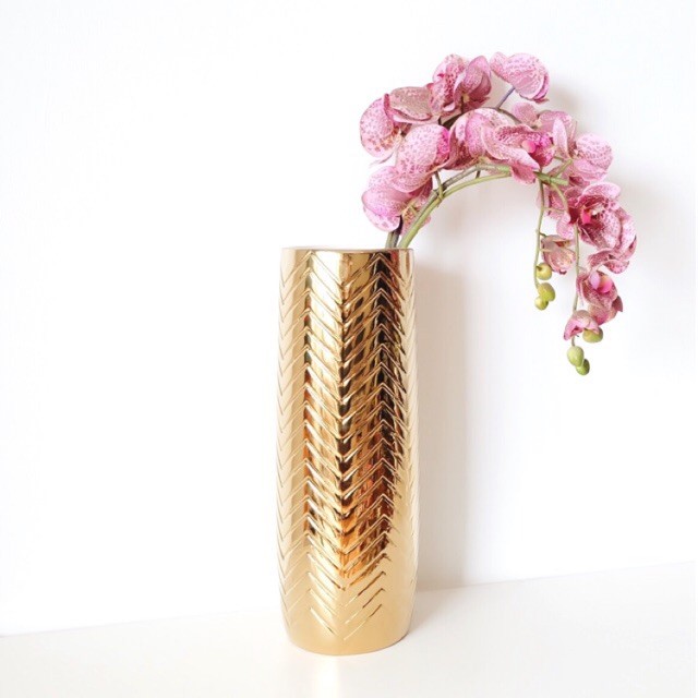 Vas Bunga Keramik Dekorasi Emas Gold / Silver / Putih - Maldives