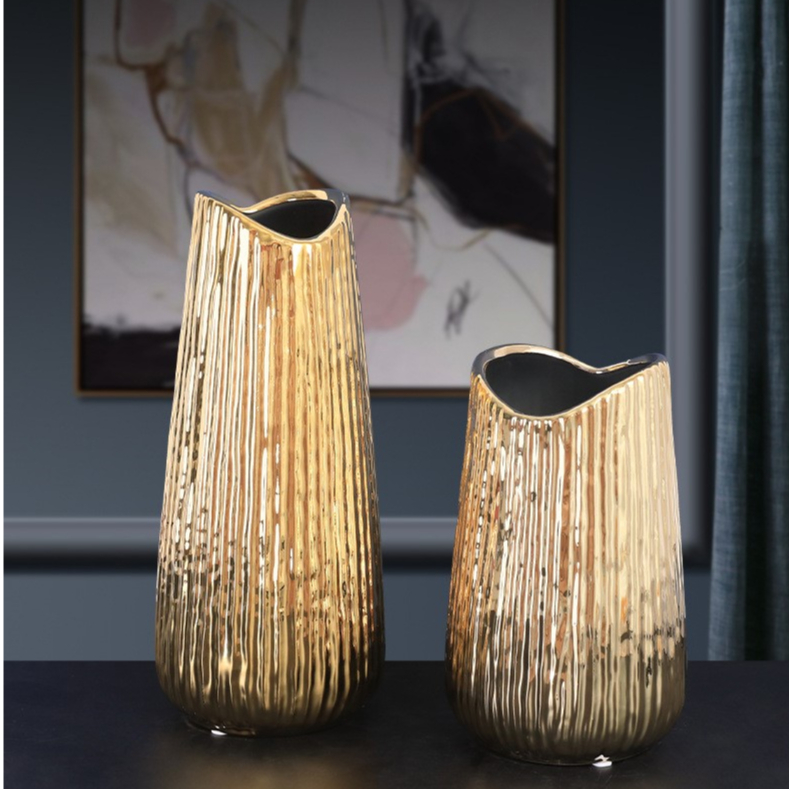Agape Vase / Vas Pot Bunga Keramik Gold Dekorasi Meja Rumah Mewah Estetik Elegan Unik Nordic