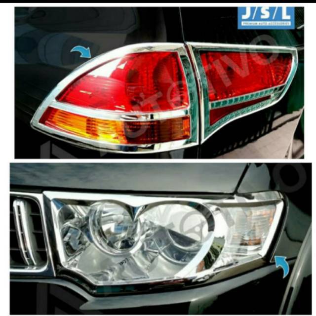 Paket garnish lampu depan dan belakang Pajero sport old lama 2010 2012 2014 2015 Hitam & Chrome