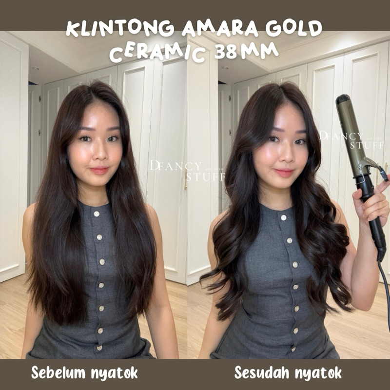 Klintong Amara Gold Ceramic 28mm 32mm 38mm Original - Catokan Curly Keriting Rambut