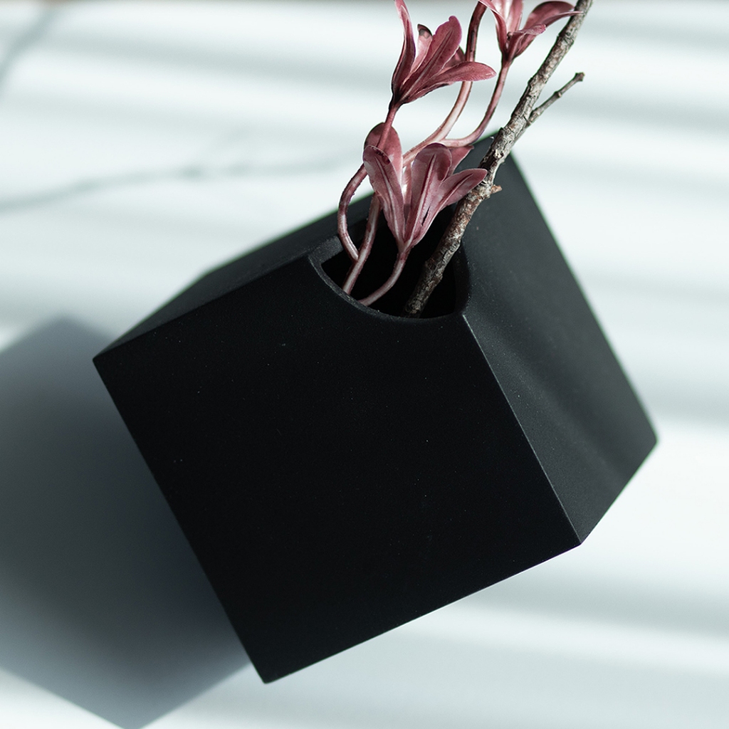 Cube Vase - Dekorasi Kubus Aesthetic Props Foto Bunga Artificial Vas Hitam