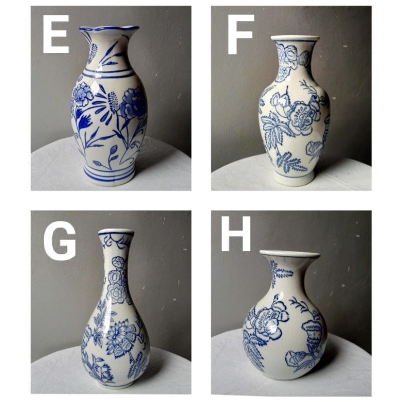 VAS KERAMIK IMPOR BENTUK CONE ICE CREAM MOTIF BUNGA BIRU PUTIH