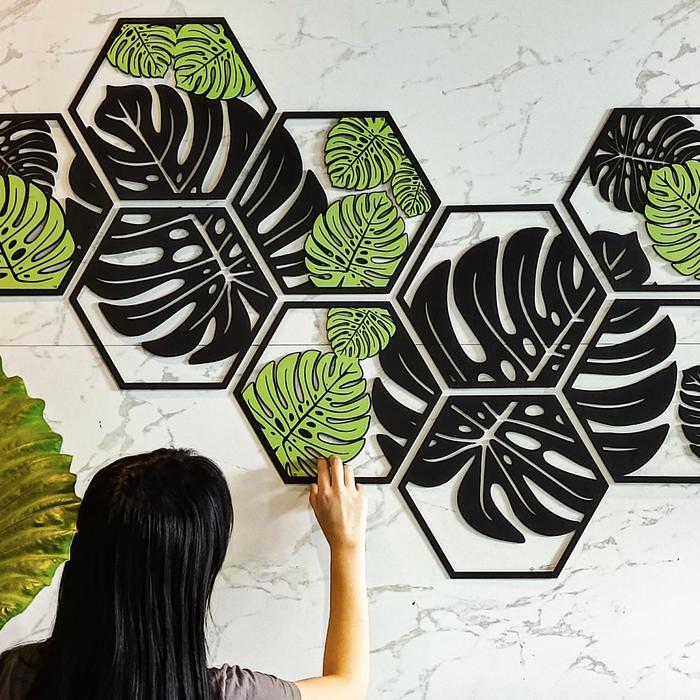 SPRING MONSTERA LASERCUT DECOR - UKURAN BESAR 2m X 1m Bahan Kayu Albisia 3mm Hiasan Ruang Elegan