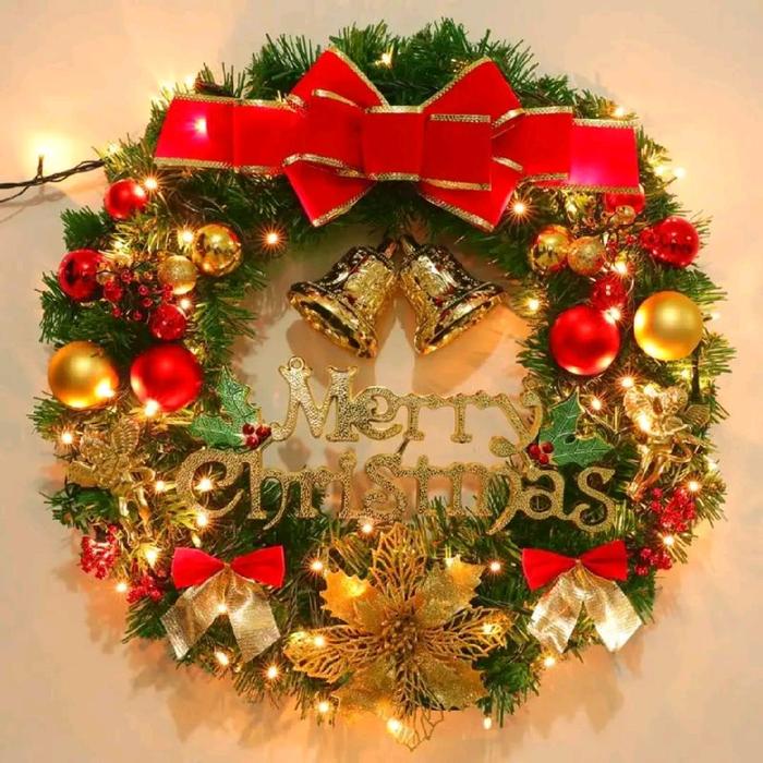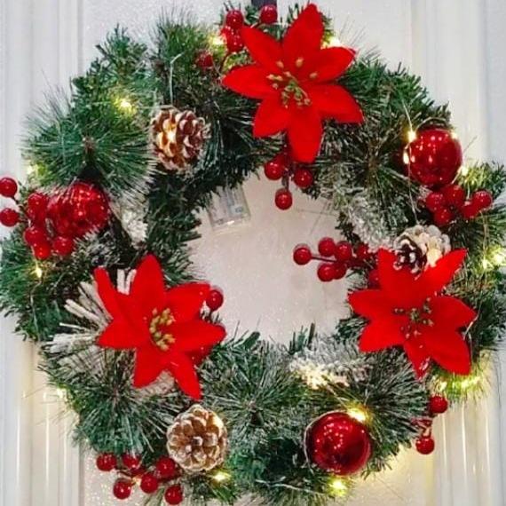 40cm Karangan Bunga Natal Premium / 40cm Christmas Wreath Garland / Krans Bunga Gantungan Pintu