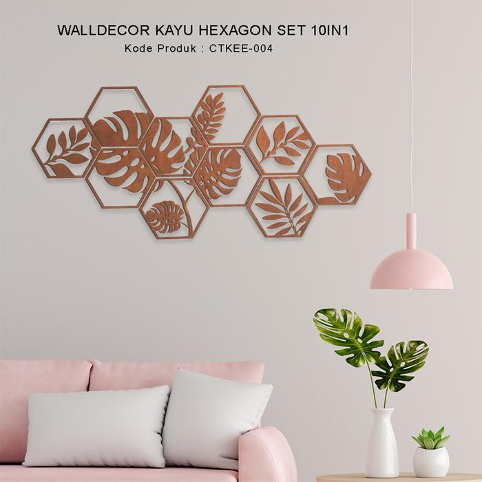 Hiasan dinding kayu hexagon isi 10pcs / walldecor ruang tamu / dinding teras / dinding kamar CTKEE04