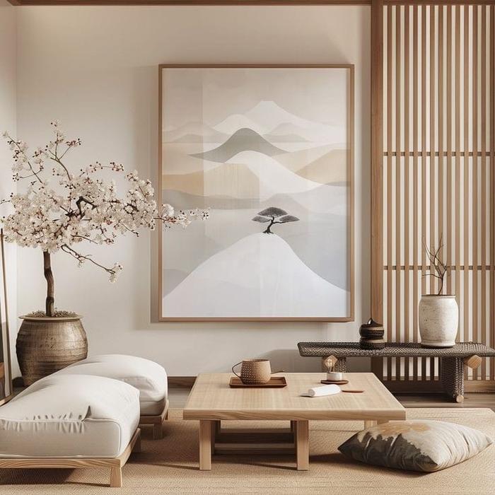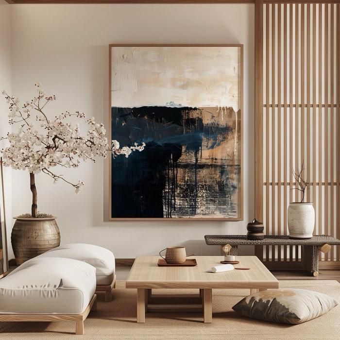 LUKISAN ABSTRAK TEMA JAPANDI (Termasuk frame dan tinggal pajang)