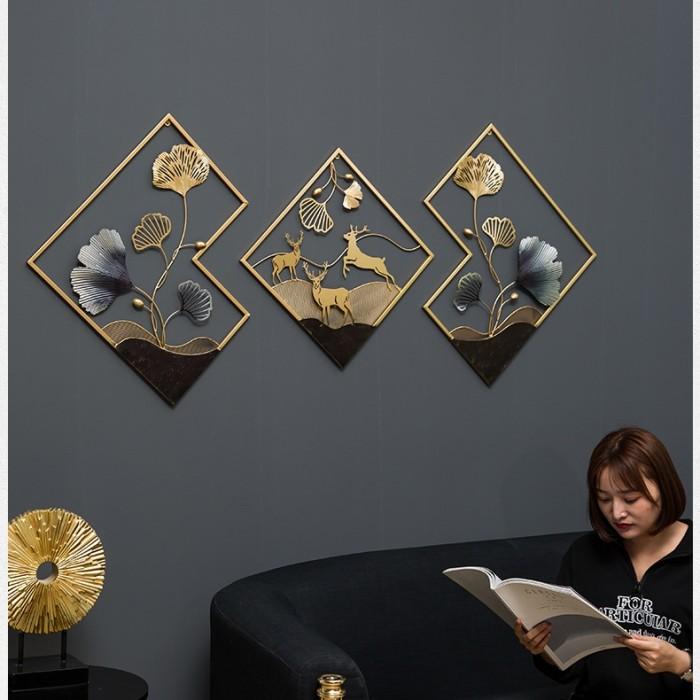 Hiasan Pajangan Dinding Set 3 Pieces Deer Leafs Metal Wall Decor