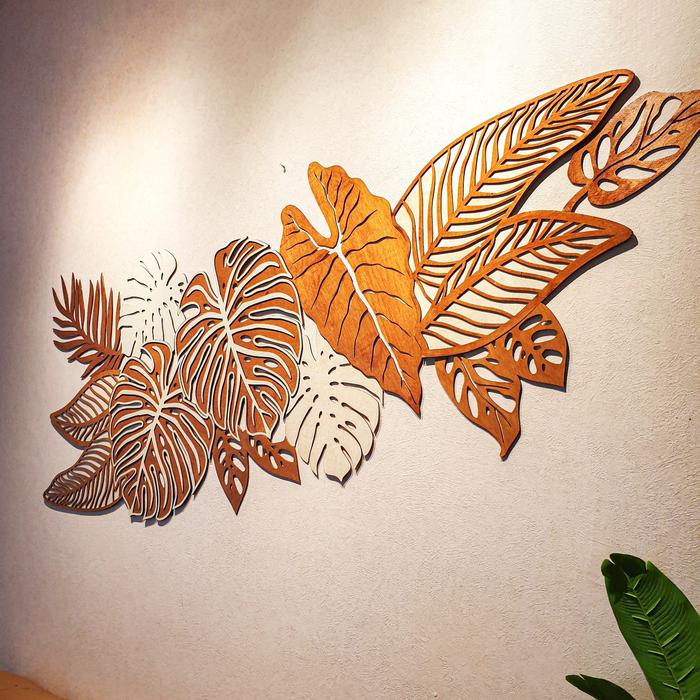 ALOKASIA & MONSTERA HIASAN DINDING UKURAN BESAR 1.8m X 0.9m bahan kayu albasia multilayer