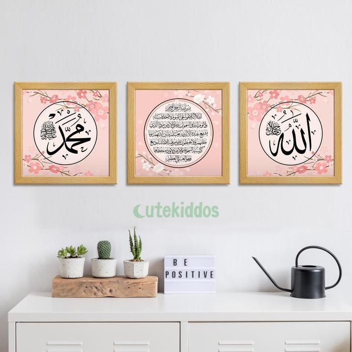 Set Kaligrafi Ayat Kursi Lafadz Allah Muhammad Poster Hiasan Dinding Estetik Minimalis