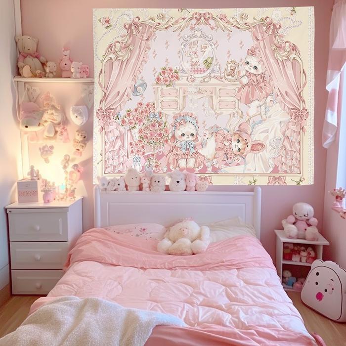 Eyre Penjualan panas Permadani kamar tidur Lolita dengan gaya feminin kartun lucu warna pink kain