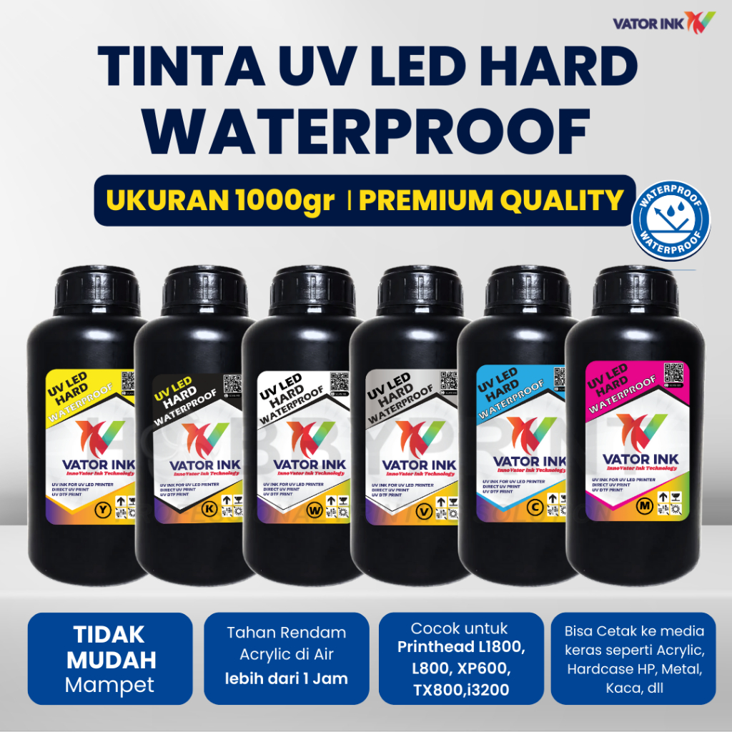 Tinta UV LED HARD WATERPROOF Vator 1000gr Epson Flatbed Cetak Acrylic Kaca Hard Case Casing HP