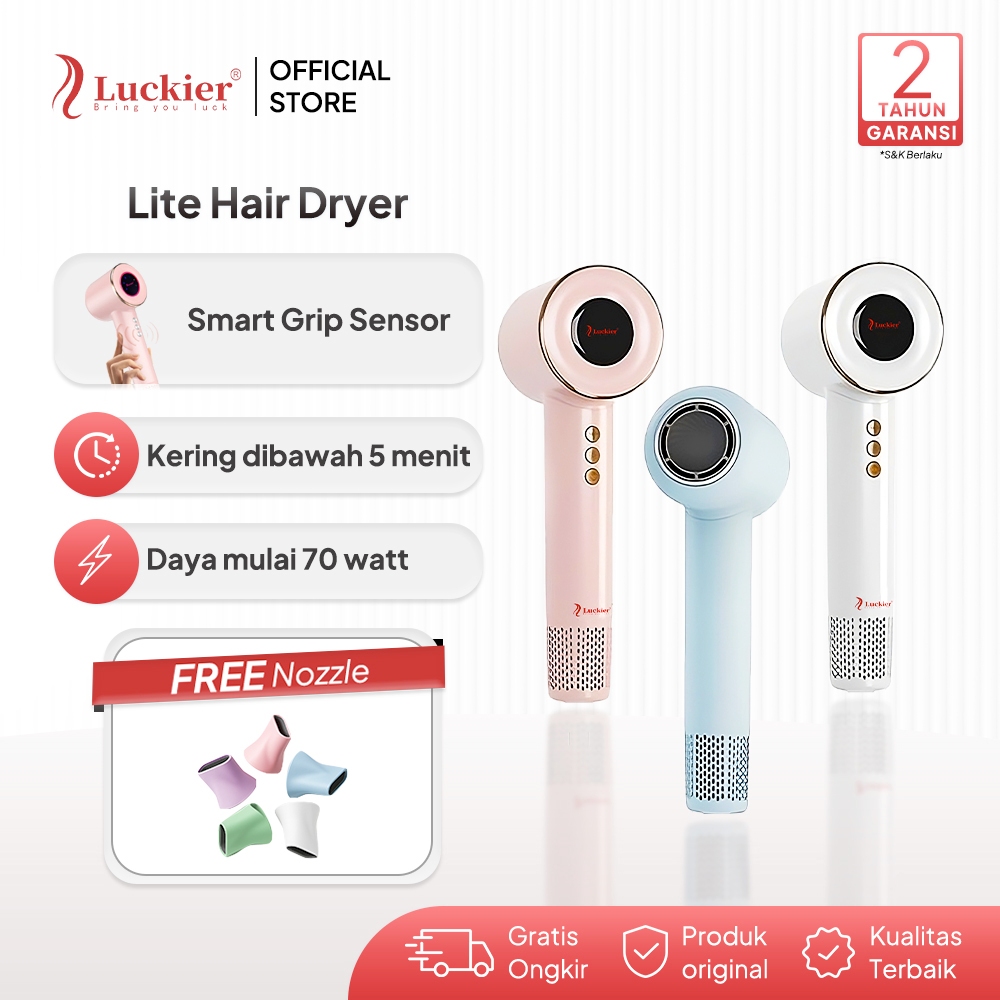 Luckier LITE Low Watt High Speed Hair Dryer Pengering Rambut Ion Negative Anti Radiasi Hampers Kado