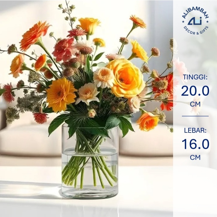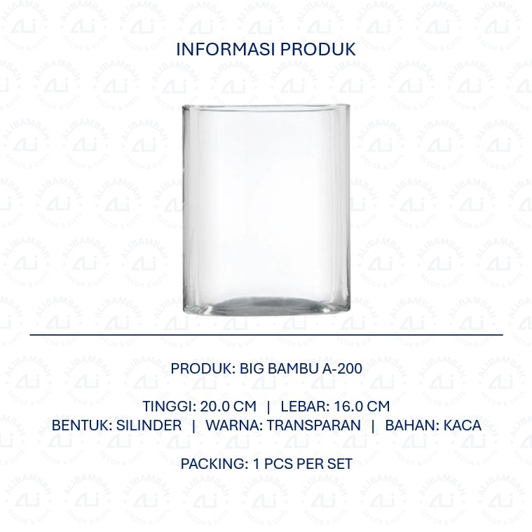 Vase Bunga Cylinder Kaca Alibambah - Big Bambu A-200