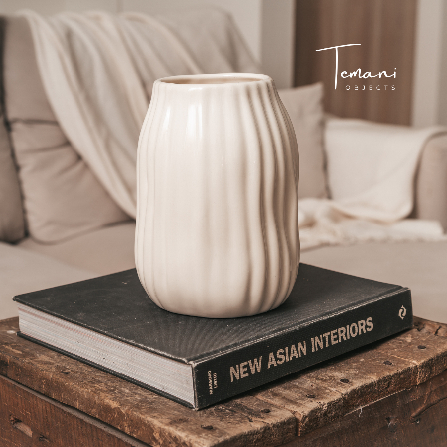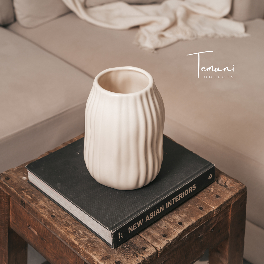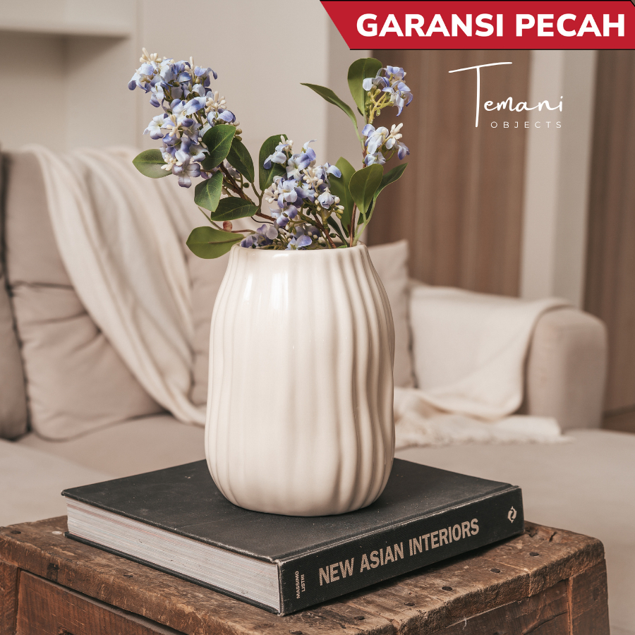 Temani Objects - Vase Bunga Keramik Cantik Vic / Vas Putih /Dekorasi Bunga Estetik/ Nordic Minimalis