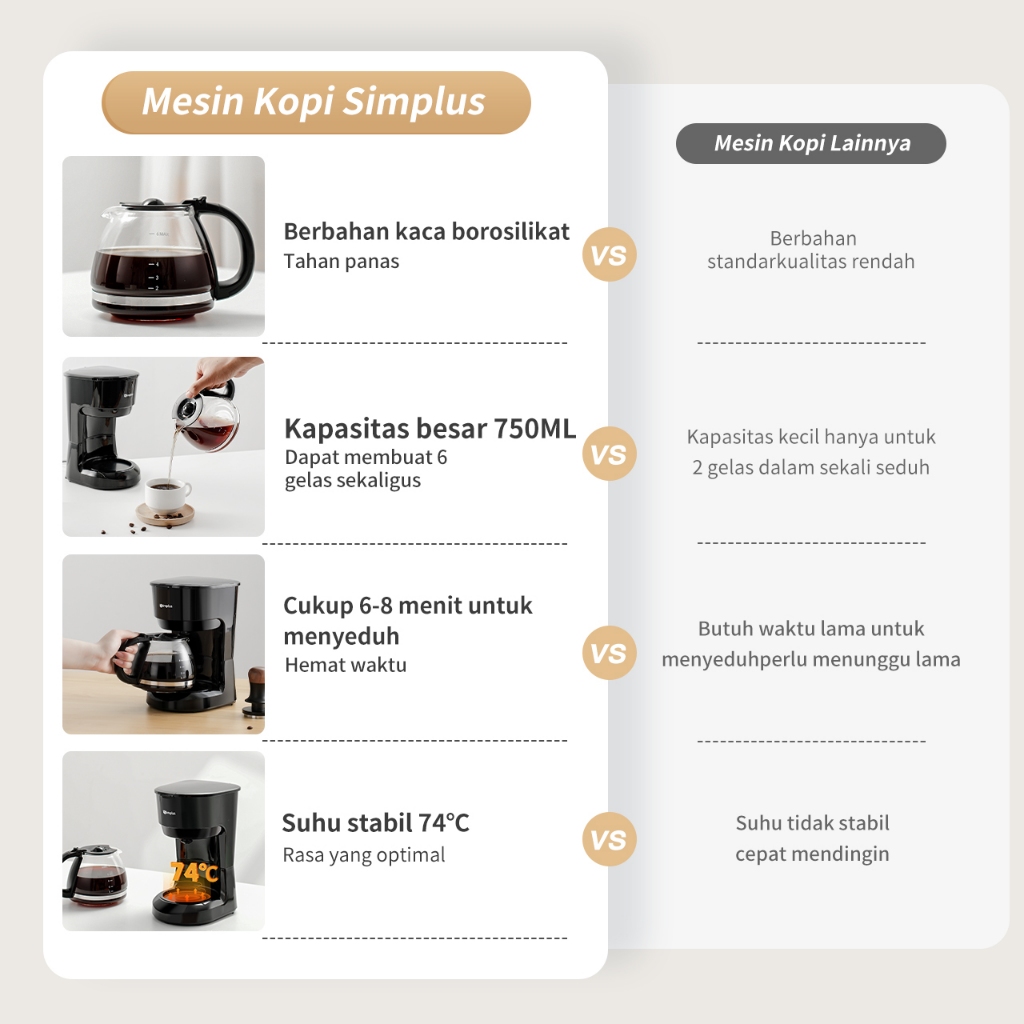 Simplus Coffee Maker Kapasitas Besar 750ml Mesin Kopi Tipe Drop Peralatan Rumah Tangga