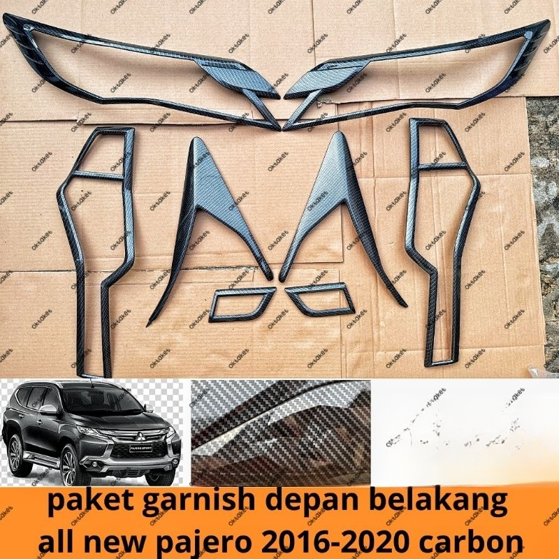 paket Garnish lampu depan belakang all new Pajero sport 2016 2018 2020 full carbon
