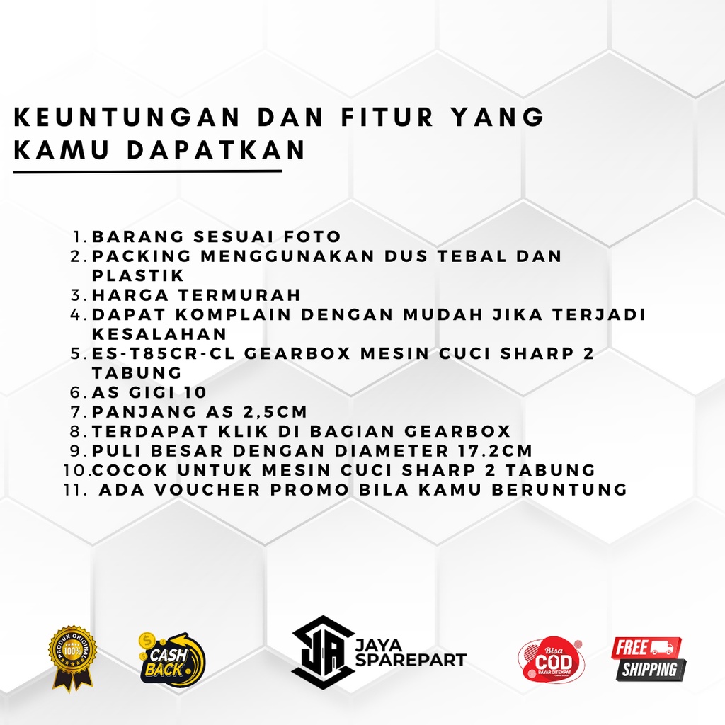 ES-T85CR GEARBOX SHARP 2 TABUNG - GEAR BOX MESIN CUCI SHARP ES-T85CR 2 TABUNG GIGI 10 KARYAJAYASPAREPART