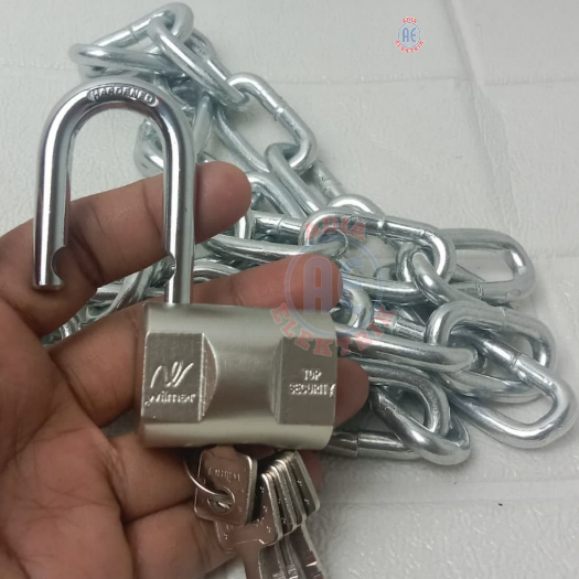 Rantai 6 mm Panjang 50 cm + Gembok 40 mm / Gembok Pagar , Gudang ,Kendaraan,/ Gembok Anti Maling