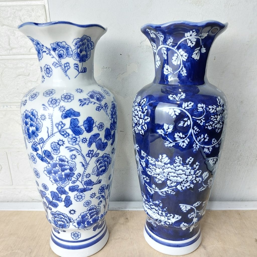 vas 1 pcs pajangan keramik biru putih Tinggi 30 cm
