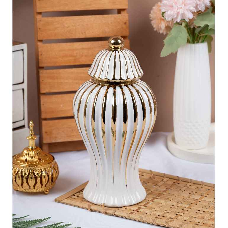Vas Bunga Guci Royal Gold / Vas Bunga Keramik Mewah / Pajangan Dekorasi Hiasan Ruang Tamu