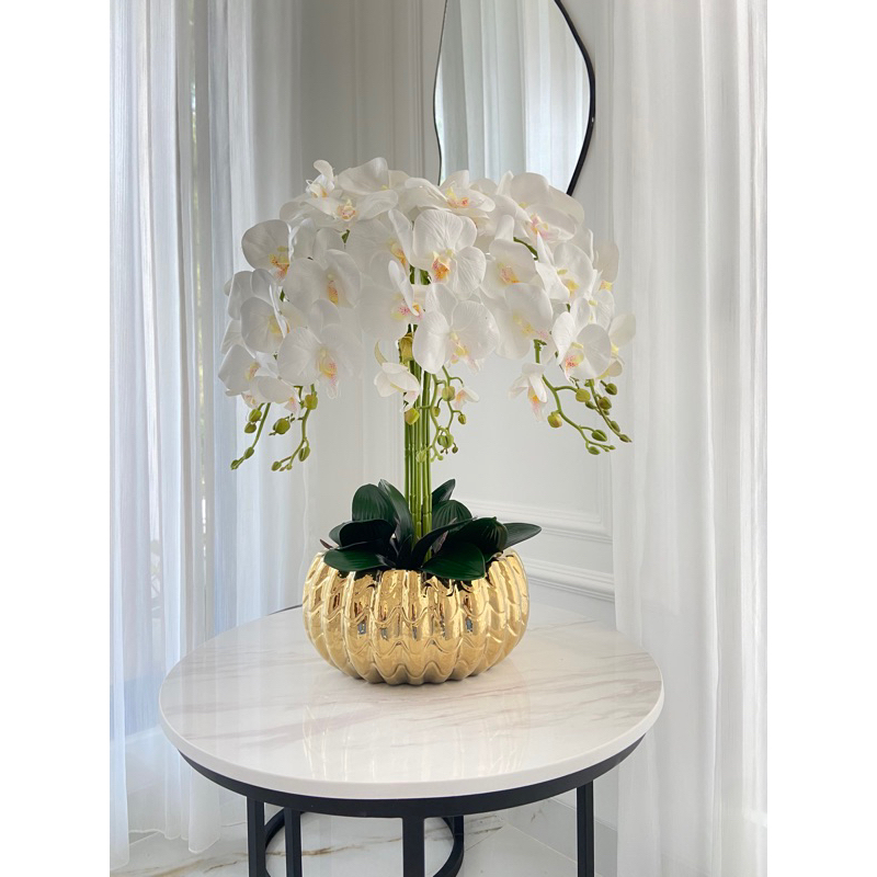 Vas Bunga Keramik Dekorasi Emas Gold / Silver / Putih - Colombia (Vas Anggrek)