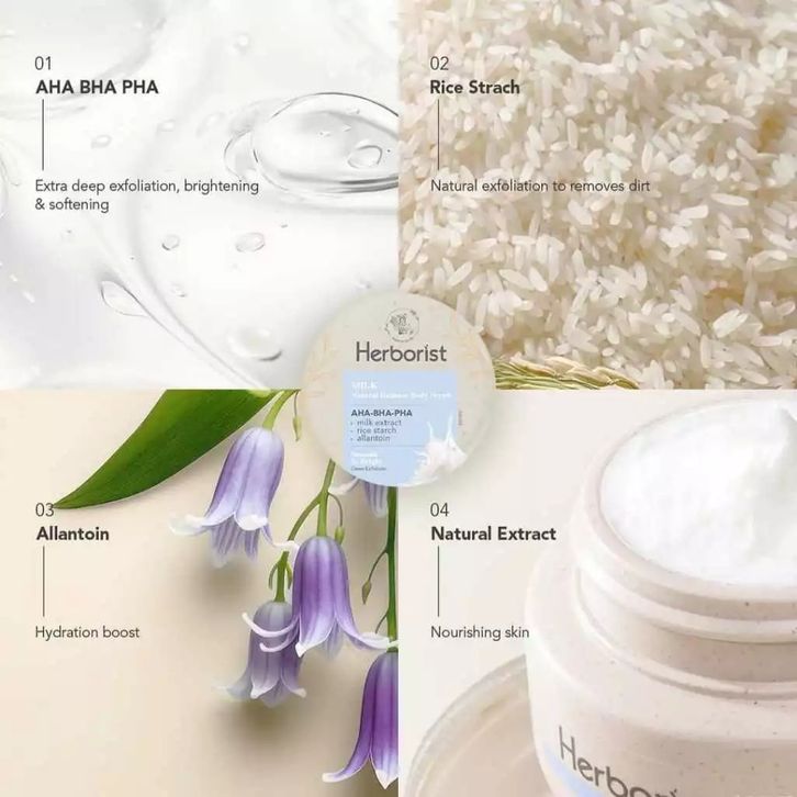 HERBORIST Natural Balinese Body Scrub AHA BHA PHA 100gr 200gr Lulur Mandi Exfoliasi Scrub Badan