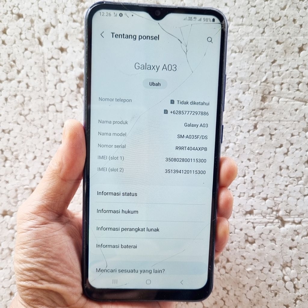Handphone Hp Samsung Galaxy A03 Second 4/128 GB Eks Resmi Sein Original