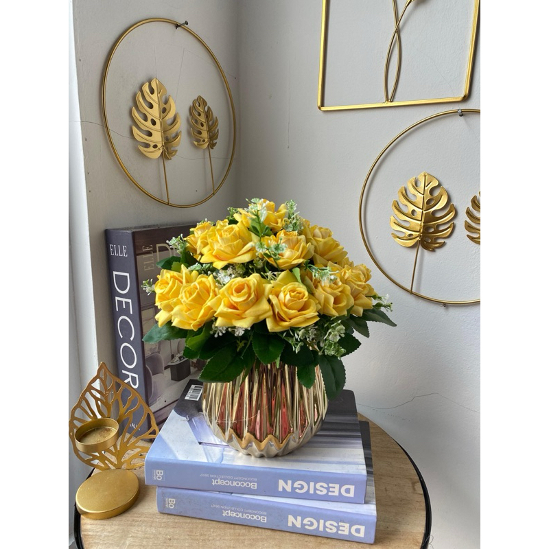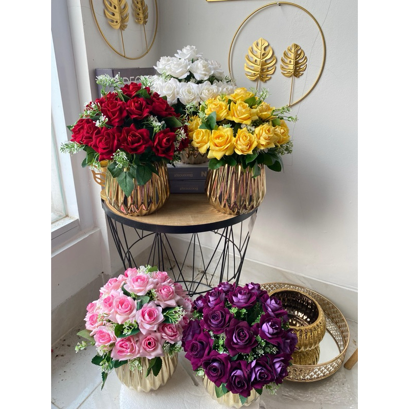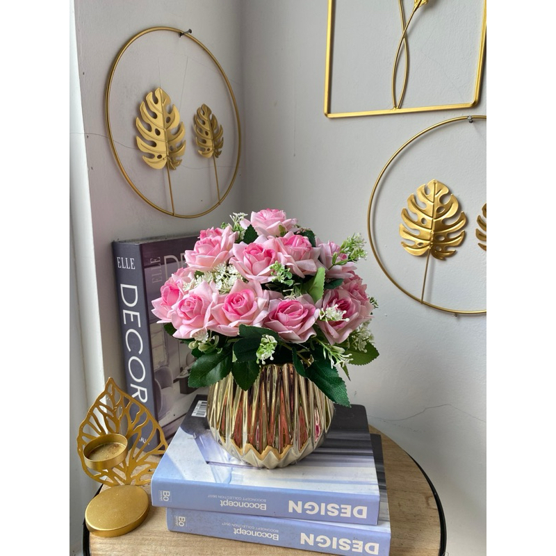 Bunga Mawar Vas Jelly Bludru Kramik Gold
