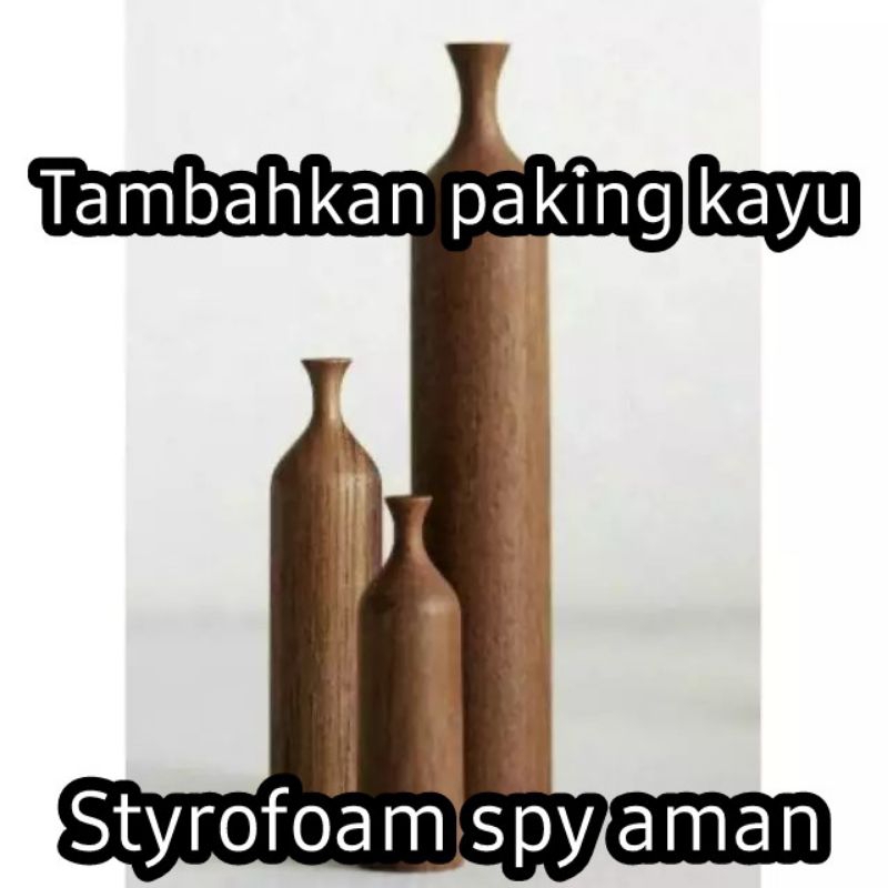 Vas Bunga Kayu Jati Botol Set 3 Pcs Aestetik