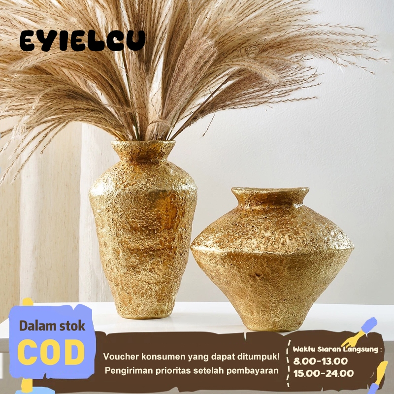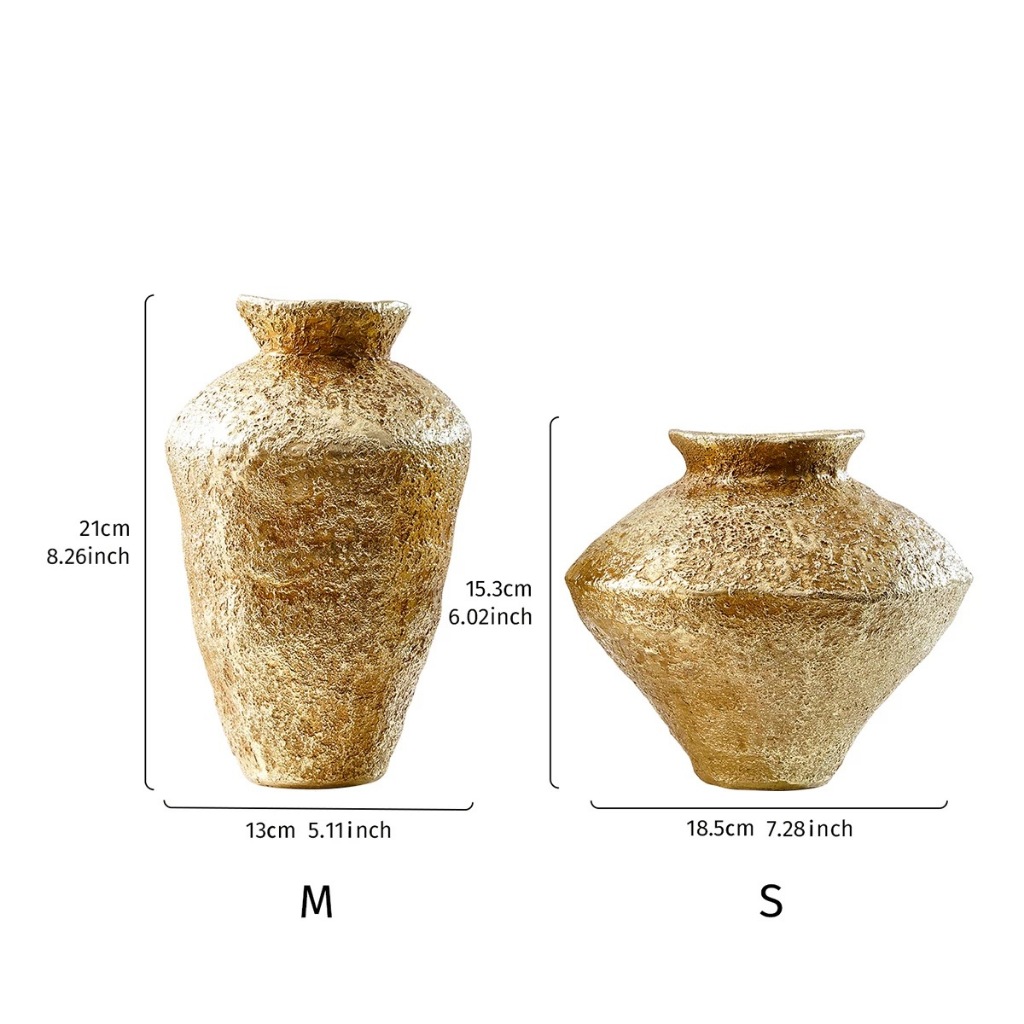 Eyre ✿ Vas Hias Retro Emas - Pot Keramik Tampilan Antik dari Resin (Kerajinan Tangan)