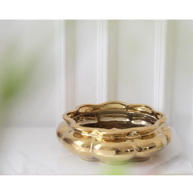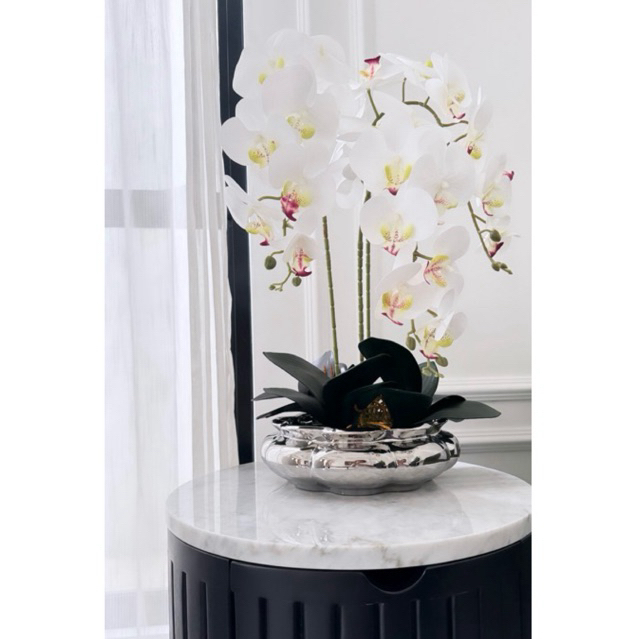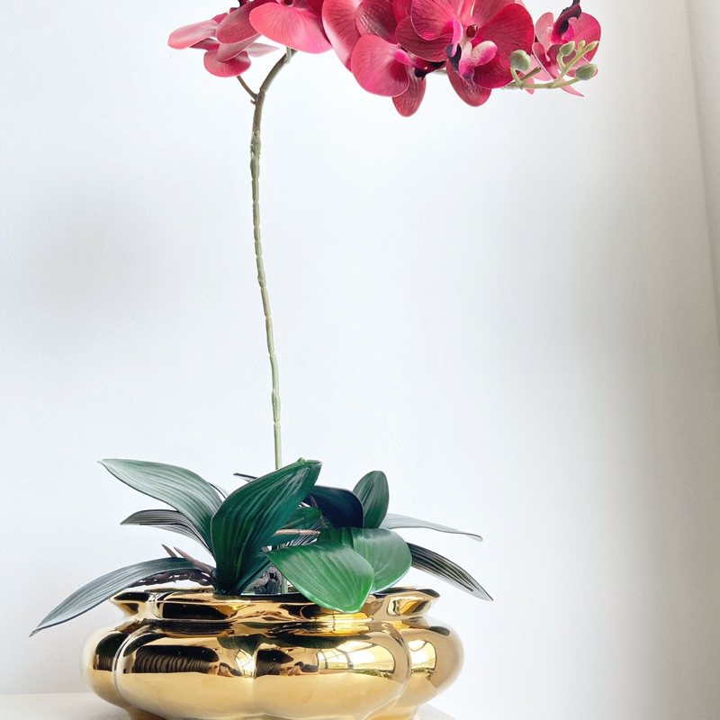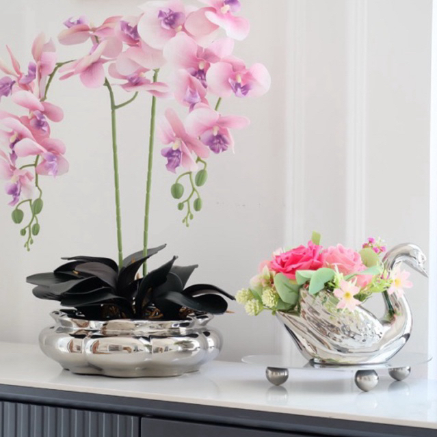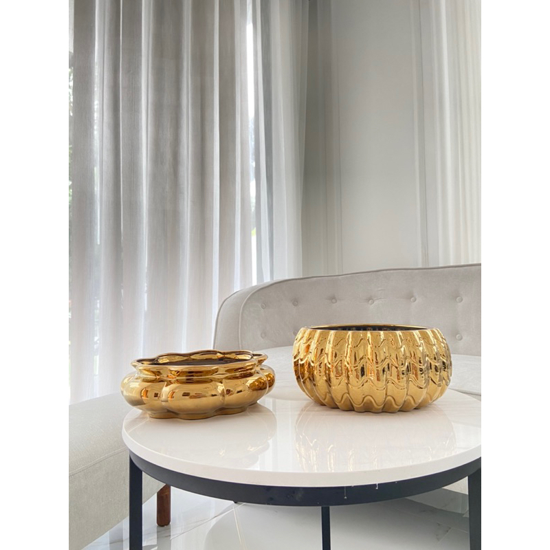 Vas Bunga Keramik Dekorasi Emas Gold / Silver / Putih - Cuba (Vas Anggrek)