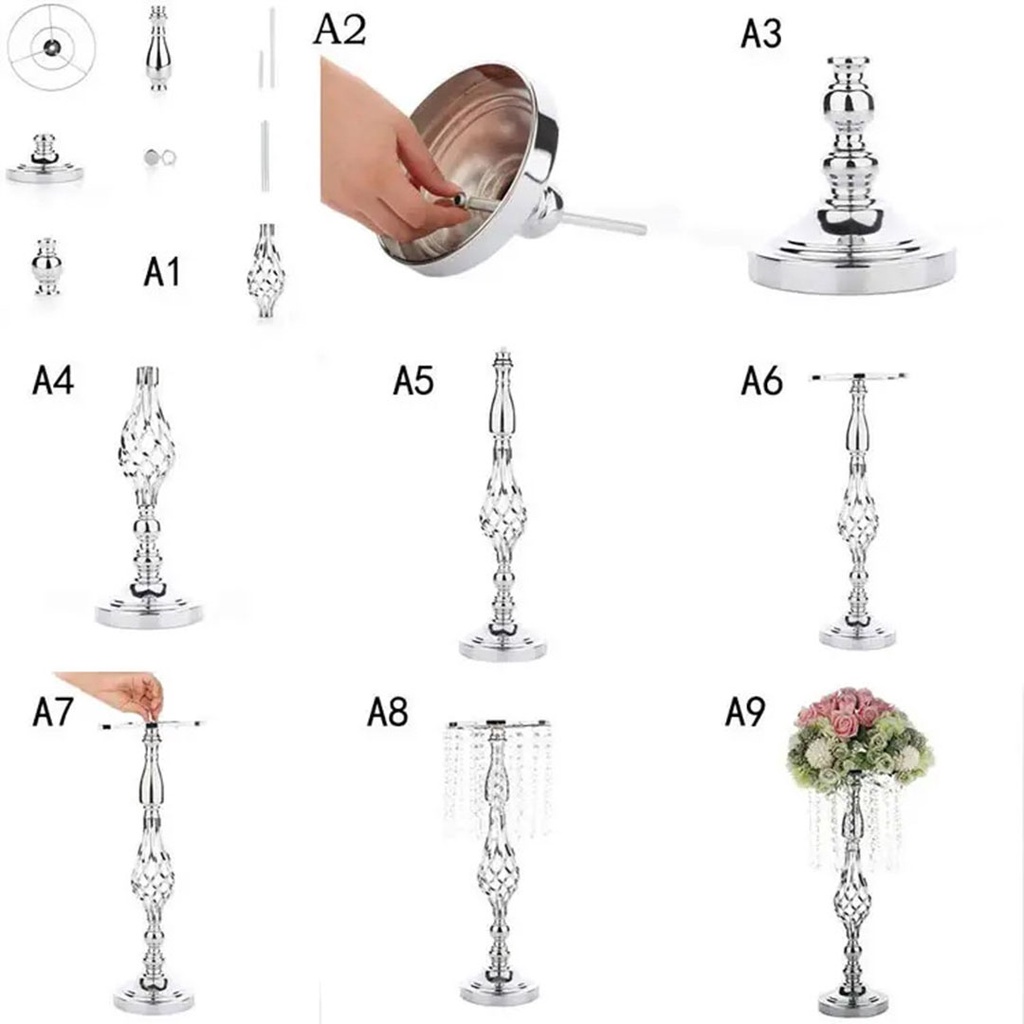 Vas Standing Wajik Centerpiece Crystal Table Flower Vase Akrilik Set Meja Dekorasi Bunga Kristal Manik-manik Bahan Logam Besi untuk Hiasan Rumah