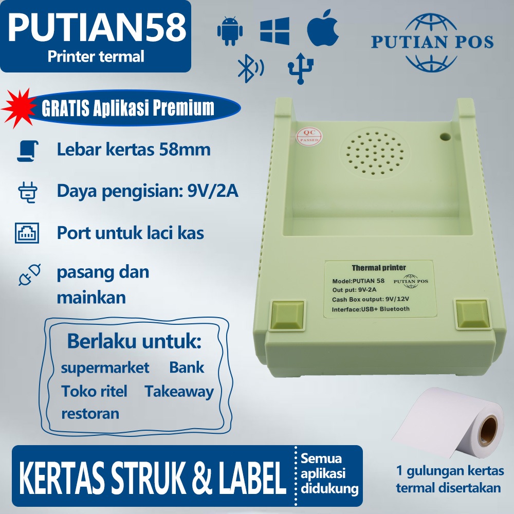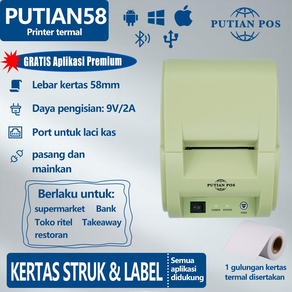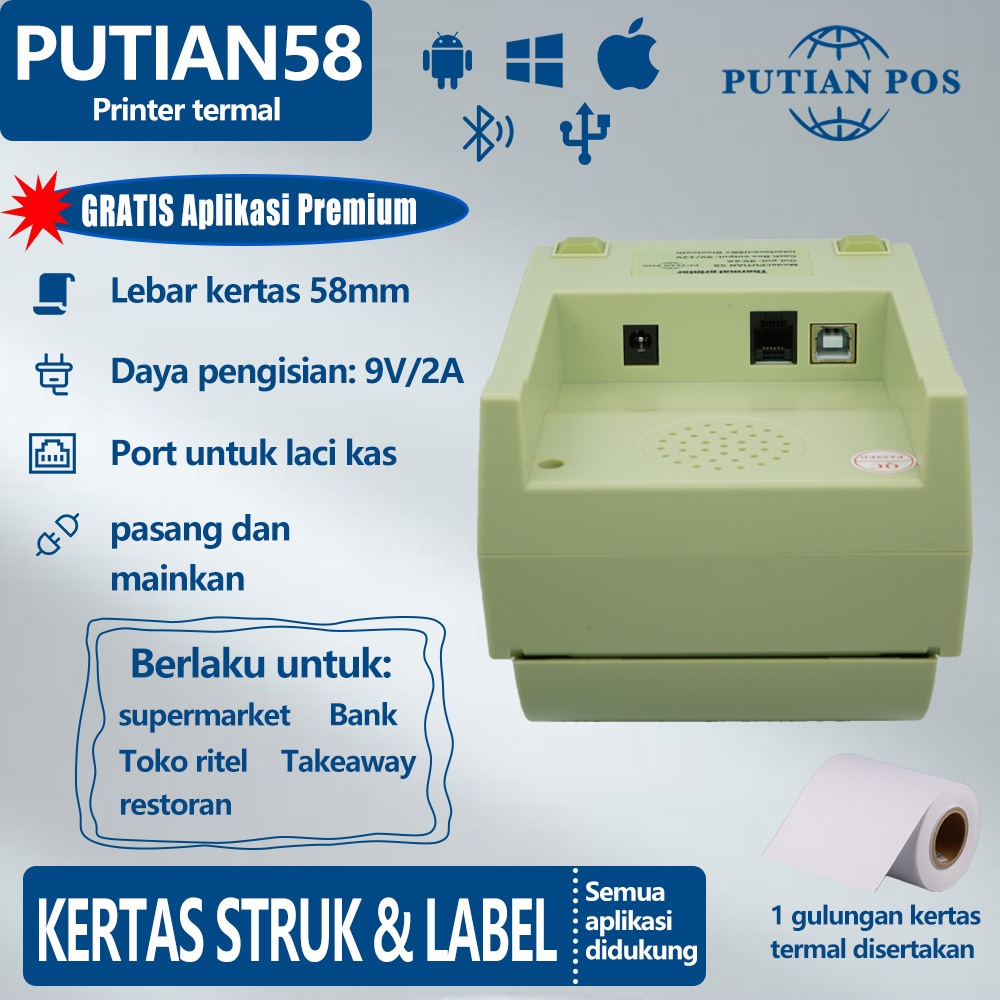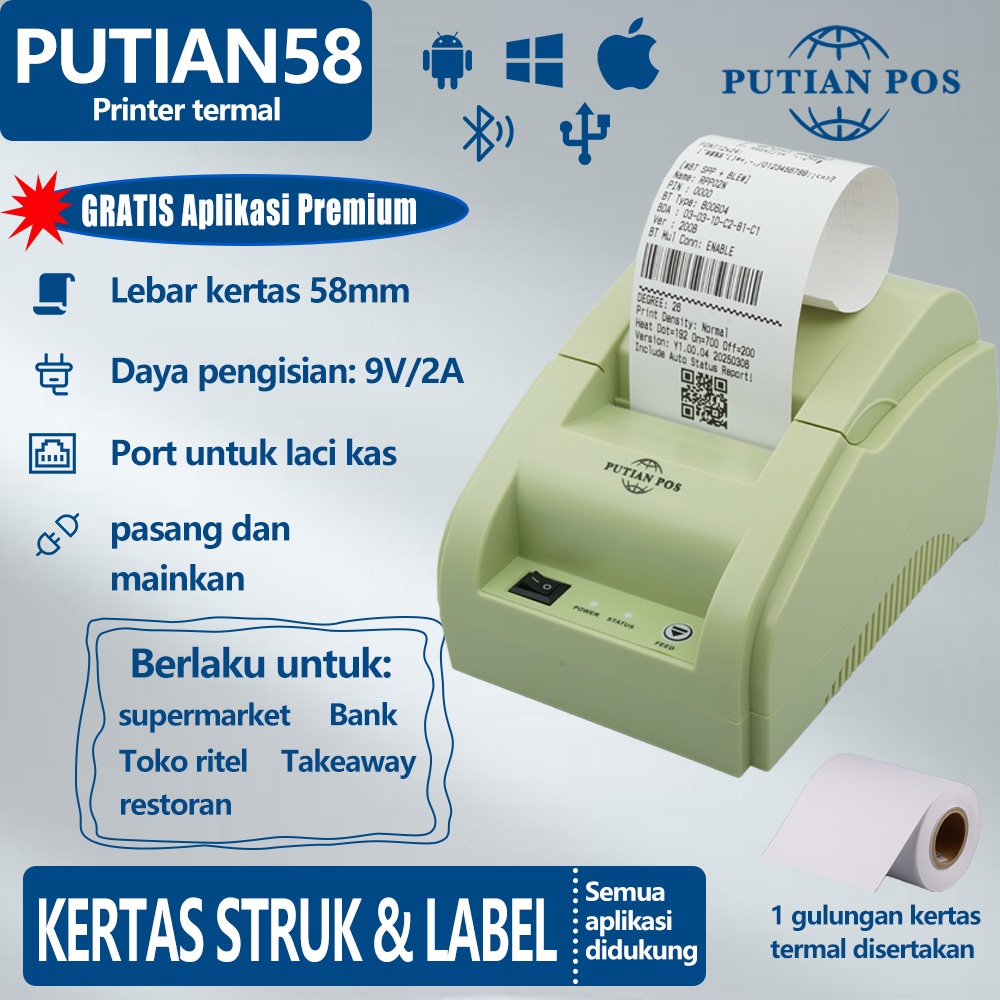 PUTIAN POS desktop 58mm printer termal PUTIAN58 printer mesin kasir mendukung RJ11, USB