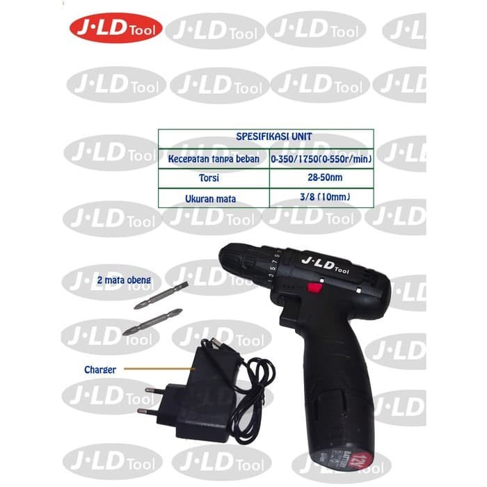 [1BATERAI] Bor Baterai JLD Hitam 12S Cordless Drill