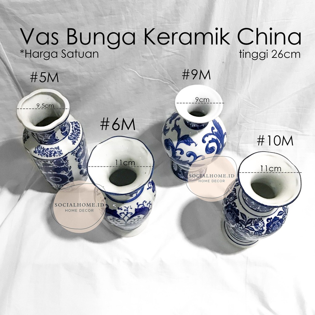 Vas Bunga Keramik Porcelain China Putih, Vas Imlek, CNY, Tinggi 20 & 26 cm