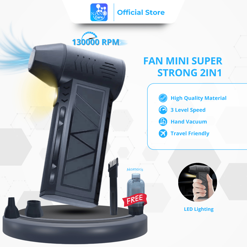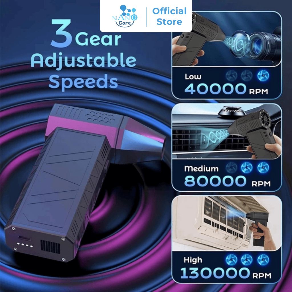 Nano Care Jet Fan Turbo/Mini Turbo Jet Fan Turbo 2IN1 3 Gear Adjustable 130000RPM with Hand Vacuum