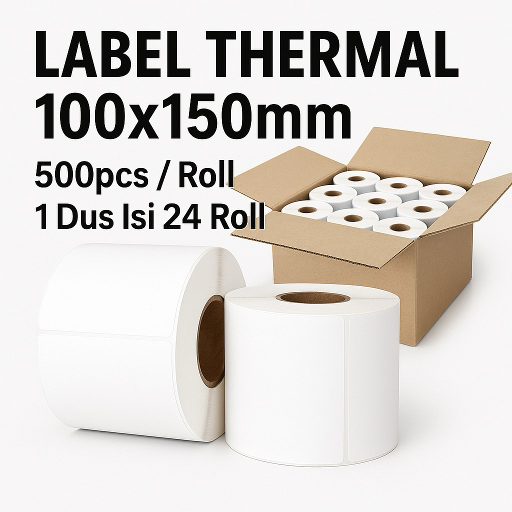 Label Thermal Resi 100x150mm 500Pcs Per Roll Dus Isi 24 Roll Harga Grosir