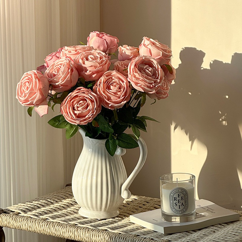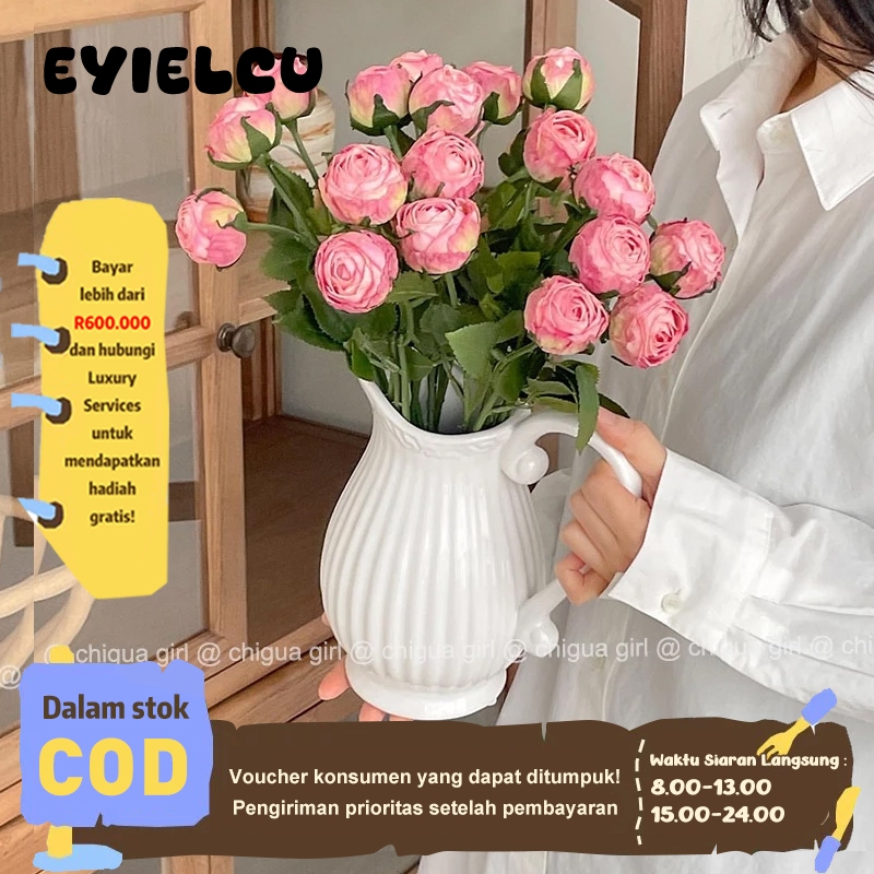 Eyre Skandinavia dalam vas keramik vintage vas keramik hidroponik ketel putih ornamen ruang tamu vas bunga desktop dengan bunga simulasiretro